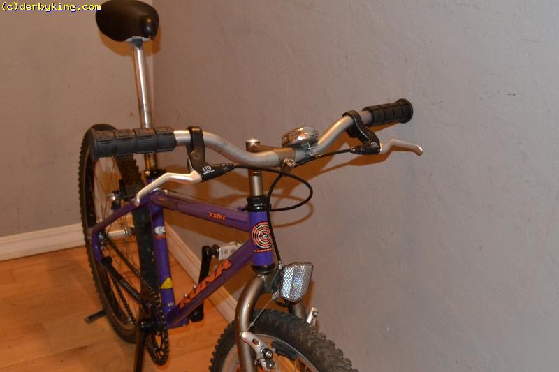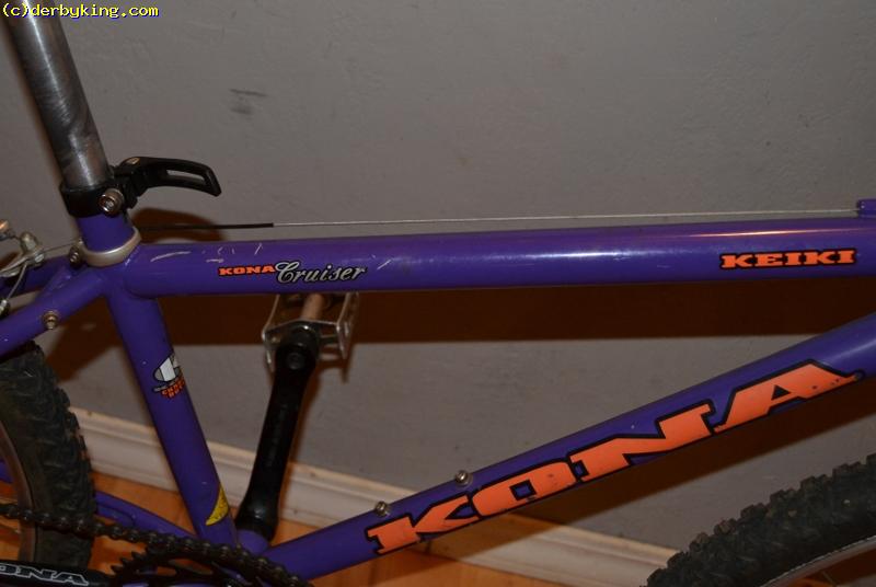 Only nineteen of these twenty-four inch wheel cruisers were imported to the US. That was over twenty years ago. Since then, this one has only hung around the bike shop, little used and lightly abused. The beefy one speed rear wheel was installed to eliminate the 3 speed coaster-brake wheel the bike came with. The solid feel and ease of pedaling is due to the high quality of welding of the steel frame. Visual evidence of this is seen by the large diameter (27.0mm)seat post, which implies a thin wall tube(which needs a welder with better heat control).